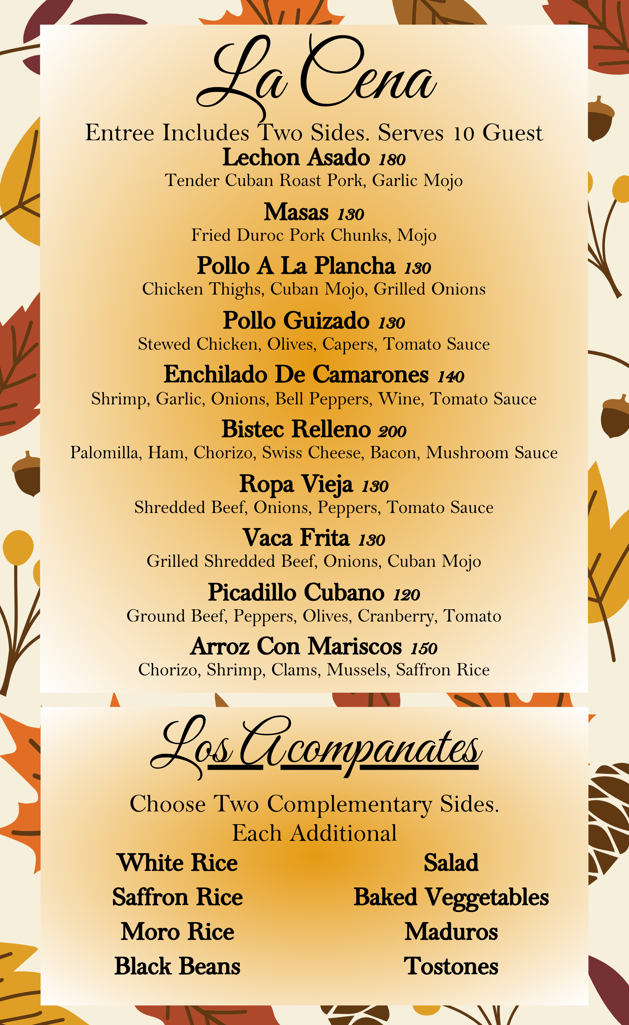 Our experienced catering team will create a customized menu featuring authentic Cuban dishes, from savory roasts to delectable desserts.